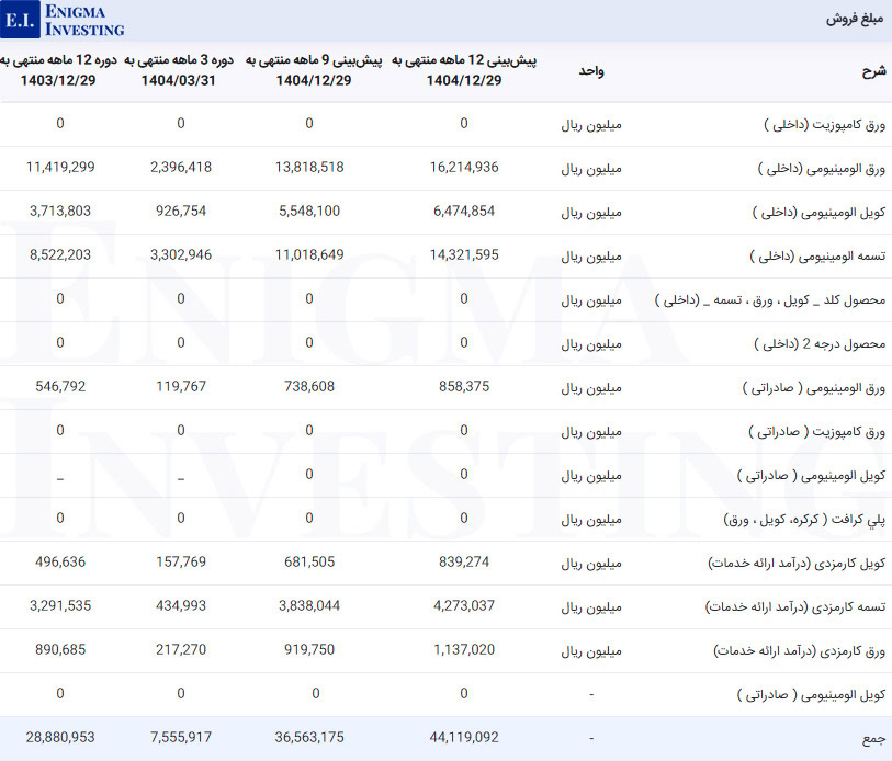 شرکتهایی که در زمینه تولید داخلی محصولات کویل، ورق و تسمه آلومینومی با هم رقابت میکنند، بر اساس مستندات منتشرشده برای دوره منتهی به ۳۱ خرداد ۱۴۰۳ به شرح زیر است.
