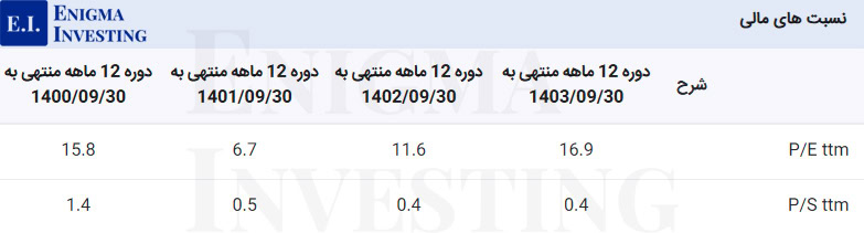 تصویر زیر نسبتهای مالی گذشتهنگر غبشهر را در چهار سال مالی اخیر نشان میدهد. همانطور که مشاهده میشود P/E ttm غبشهر در دوره 12ماهه منتهی به 1403/09/30 برابر با 16.9 بوده است. لازم به ذکر است که P/E گروه در تاریخ نگارش این مقاله (1404/09/10) برابر با 6.46 درصد است.
