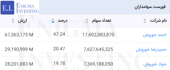 در تحلیل بنیادی کویر آقایان احمد خوروش، حمیدرضا خوروش و جواد خوروش از بنیانگذاران این شرکت هستند و درمجموع مالکیت بیش از 87 درصد از سهام کویر را در اختیار دارند.