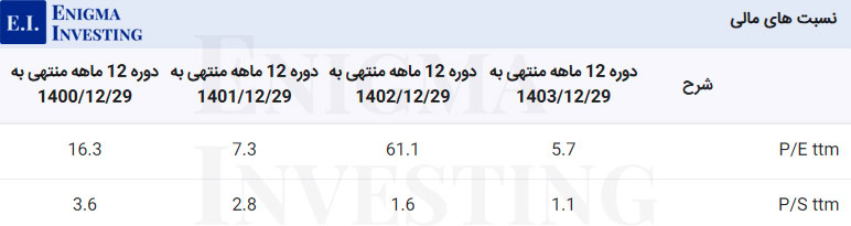 تصویر زیر نسبتهای مالی گذشتهنگر شرکت پتروشیمی فناوران را در چهار سال مالی اخیر نشان میدهد. همانطور که مشاهده میشود P/E ttm شفن در دوره 12ماهه منتهی به 1403/12/30 برابر با 5.7 بوده است. لازم به ذکر است که P/E گروه در تاریخ نگارش مقاله (1404/07/07) برابر با 7.08 درصد است.