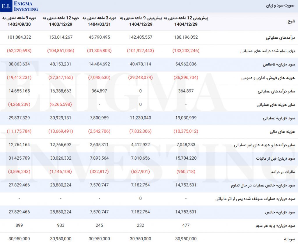 محاسبه EPS و P/E تحلیلی منتهی به 1404٫12٫29